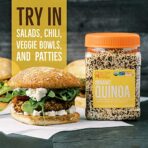 Details: Finding foods with lots of nutrients can be helpful for people who are trying to change their diet and live a better life. It can be difficult to get enough good stuff into your diet to provide you with useful vitamins and other nutrients. Our Organic Quinoa is a nutrient powerhouse and includes one impressive ingredient: organic quinoa. Each serving contains 6 grams of complete protein, and 3 grams of fiber leaving you feeling fuller for longer. It also has only 2.5 grams of fat and 170 calories per serving. It also includes all 9 essential amino acids! Quinoa is the perfect substitute for brown or white rice and can be paired well with stir-fried vegetables and other dishes. Before cooking your multicolored quinoa, rinse it with water. Once it has been rinsed, combine 1 cup of quinoa with 2 cups of water in a medium pot and bring to a boil. After it begins to boil, cover the pot and reduce heat to medium-low and let simmer for about 15 ā 20 minutes until the water is absorbed. With a light nutty flavor, our quinoa can be eaten with a variety of savory flavor profiles that your entire family will love. The possibilities are endless! Our Organic Quinoa is gluten-free, non-GMO, kosher, and USDA organic certified, making it an essential powerhouse grain for your pantry. BetterBody Foods is determined to bringing you quality products that are better for your body but donāt make you sacrifice the flavors that you enjoy. Find food that youāll love to love with our 1.5 lbs. container of Organic Quinoa!