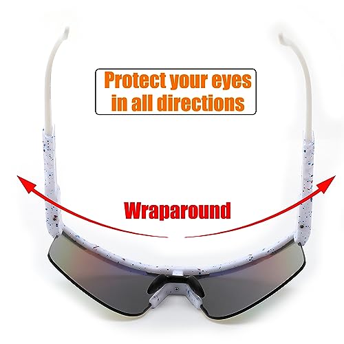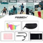 - FASHION SPORTS SUNGLASSES – FEISEDY sunglasses use a one-piece design and mirrored lenses to highlight the stylish design. The Wraparound sunglasses can well wrap your face and protect your eyees from harm, making you more comfortable and stylish in outdoor sports.