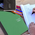 • Ruled sheets are securely sewn in, and the durable one-piece plastic cover protects notes all year long. Cover lies flat when open for easy notetaking.