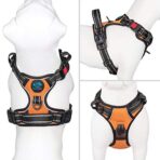 • [UPDATED VESION, EASY TO PUT ON & TAKE OFF] This dog harness has 3 buckles( One is on the neck with Lockable, two are on the chest), NO NEED go through dog’s head. This will let your dog loves to wear harness!
