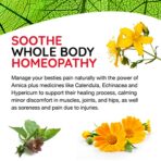 - SOOTHE WHOLE BODY HOMEOPATHY – Manage your besties pain naturally with the power of Arnica plus medicines like Calendula, Echinacea and Hypericum to support their healing process, calming minor discomfort in muscles, joints, and hips, as well as soreness and pain due to injuries.